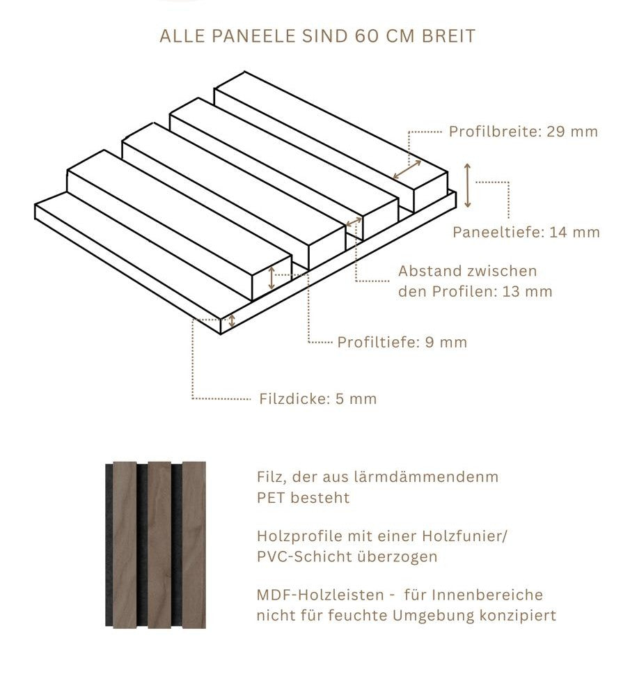 Akustikpaneel in Grau | MDF mit Naturholzfurnier | Matt | Schallabsorbierend | Wandverkleidung zur Schraub- oder Klebemontage